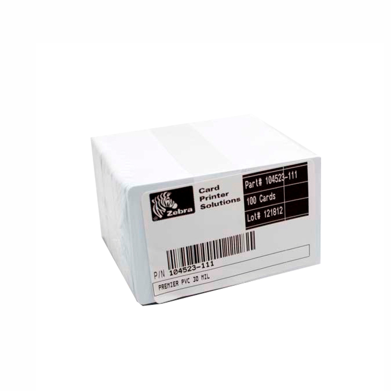 Zebra white PVC cards,10 mil PVC (paq 500pzas) adhesive back with 14 mil Mylar